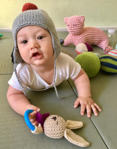 Beim gemeinsamen Stricken hast du die Gelegenheit dich mit anderen Müttern auszutauschen, während die Babys miteinander und dem von mir gefertigten Strickspielzeug spielen können.